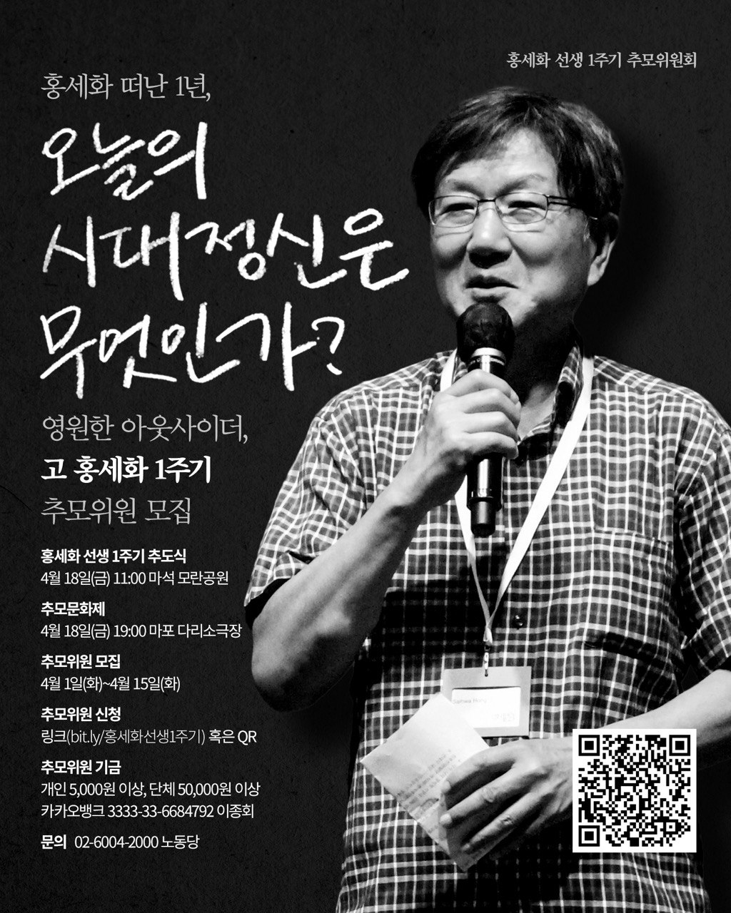■ 추모위원 모집링크: https://bit.ly/홍세화1주기 (4월 1일(화)부터 4월 15일(화)까지)