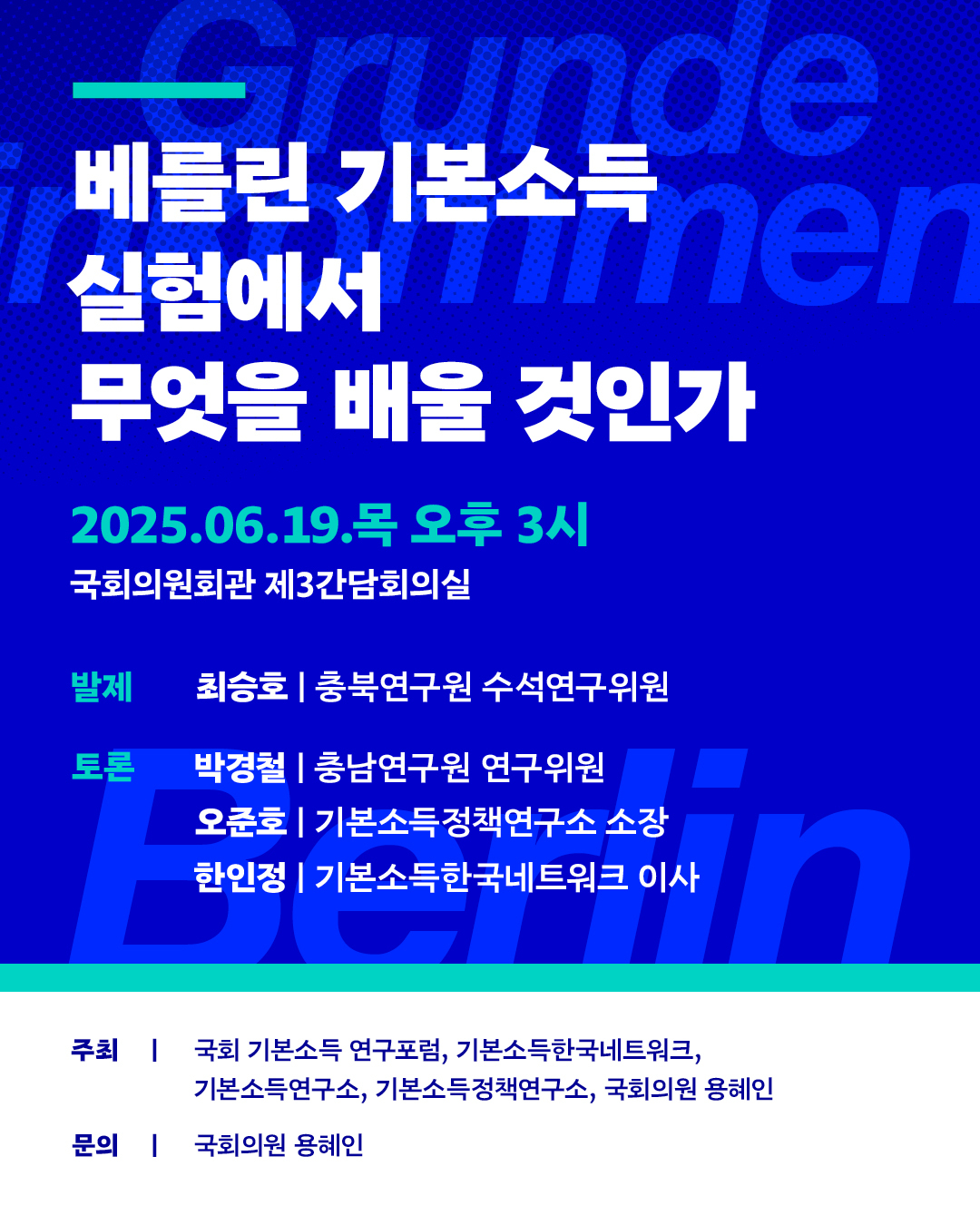 [알림] 2025년 6월 19일, 토론회 “베를린 기본소득 실험에서 무엇을 배울 것인가”가 열립니다 (영상기록 추가)